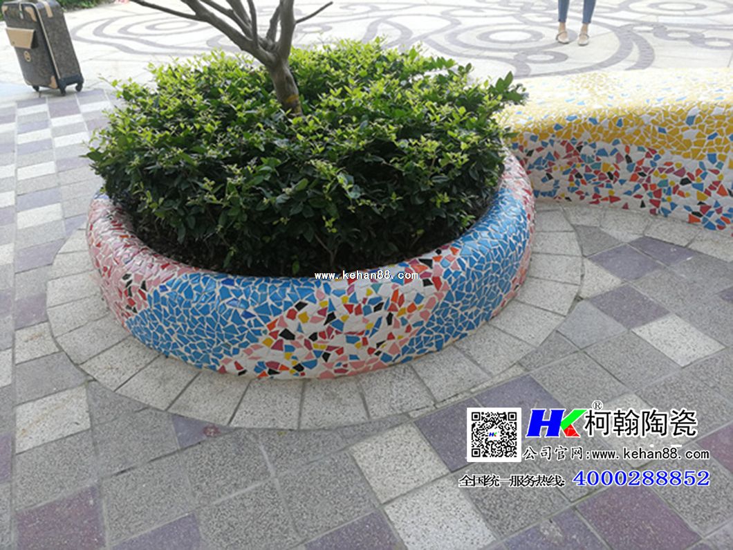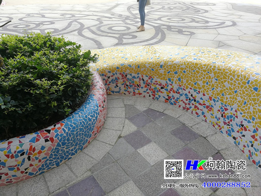 适合用在公园,文化中心,学校,景观阶梯,树池花坛,艺术花坛,园林景墙,酒店KTV,娱乐广场,别墅,小区,学校等高档场所 本产品由大小不同的陶瓷碎片组合所做而成