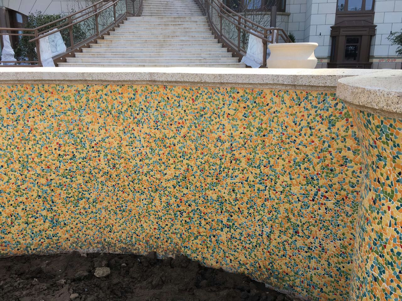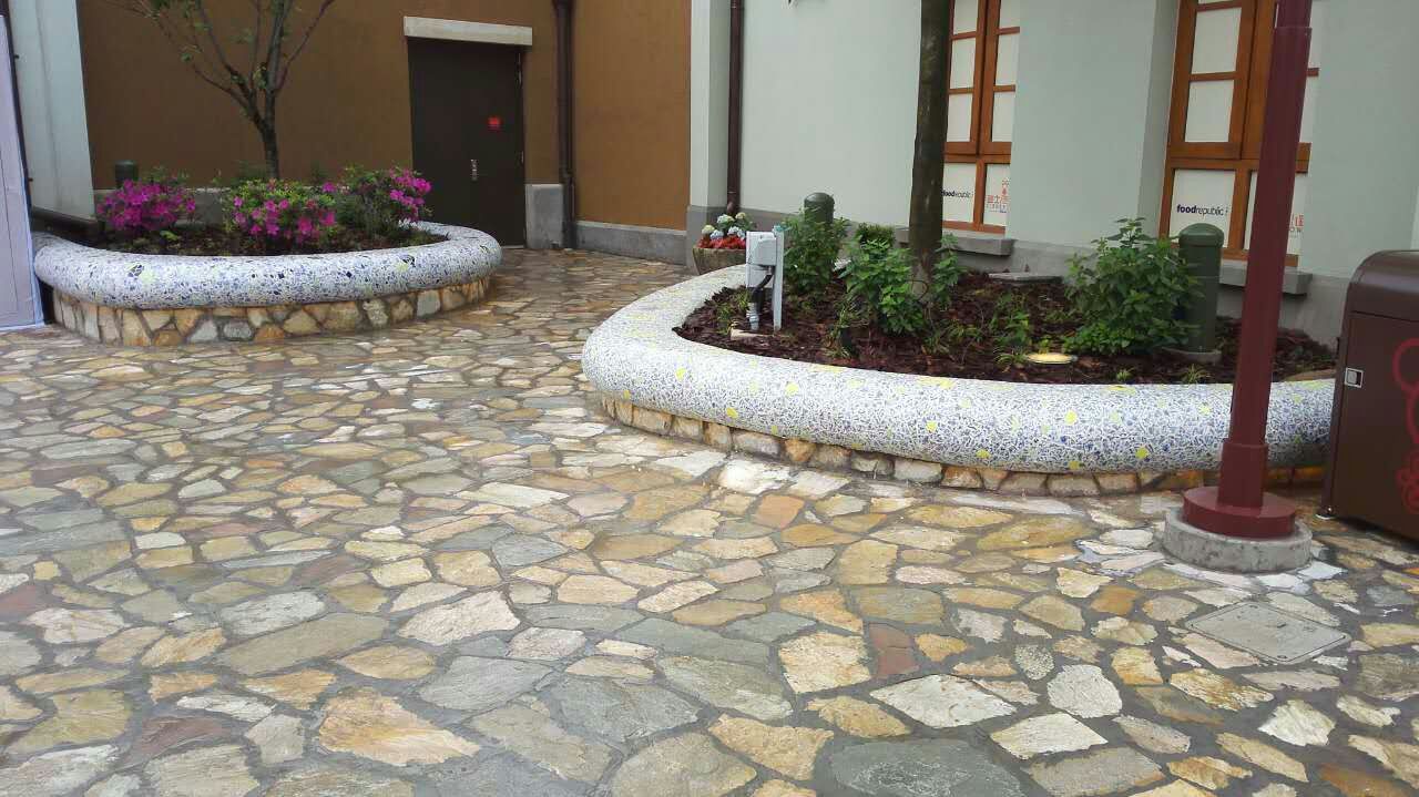 本产品由柯翰公司用陶瓷碎片精心为上海迪斯尼量身制作。采用陶瓷碎片和青花瓷片来做的艺术作品,显示出不凡的艺术气氛与众不同的独特之处。陶瓷碎片和自由石的组合边角圆滑不伤手,是现代时尚的艺术景墙和景观墙的首选产品,看后有种停住休息一会的感觉.....