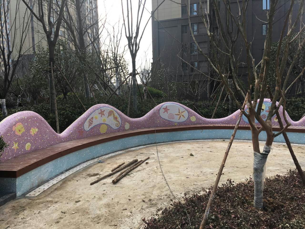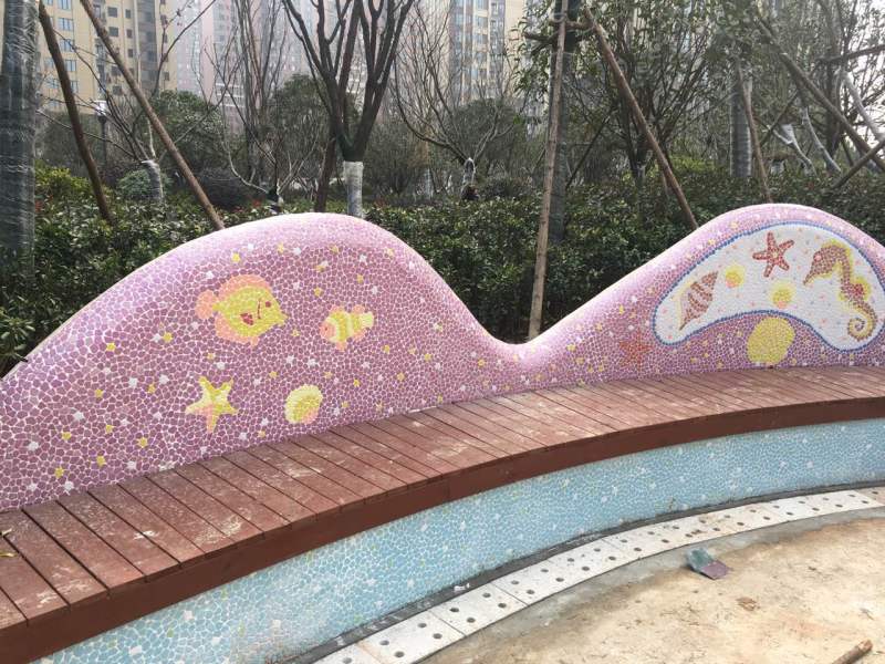 本产品由柯翰公司用陶瓷碎片精心为西双版纳万达量身制作。采用陶瓷自由石碎片和玻璃珠及鹅卵石来完成的艺术作品,显示出不凡的艺术气氛与众不同的独特之风格。陶瓷碎片和自由石碎片和玻璃珠及鹅卵石的组合边角圆滑不伤手,美观,大方,使人看后有种停住休息一会的感觉.....
