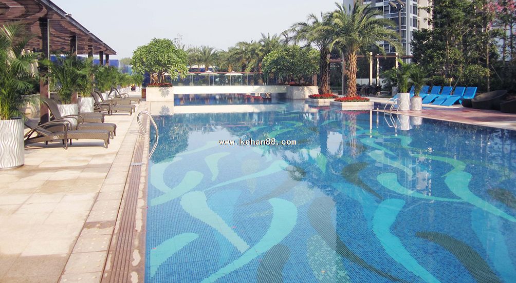 广州万科金域蓝湾泳池玻璃水晶陶瓷游泳池马赛克拼图23.25,48陶瓷马赛克规格泳池砖景观别墅酒店游泳池拼图