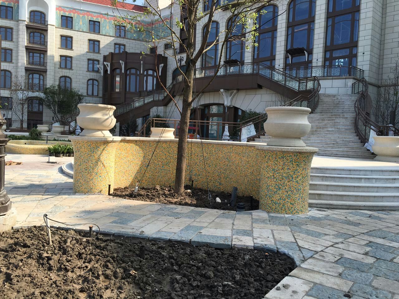 本产品由柯翰公司用陶瓷碎片精心为上海迪斯尼量身制作。采用陶瓷碎片和青花瓷片来做的艺术作品,显示出不凡的艺术气氛与众不同的独特之处。陶瓷碎片和自由石的组合边角圆滑不伤手,是现代时尚的艺术景墙和景观墙的首选产品,看后有种停住休息一会的感觉.....