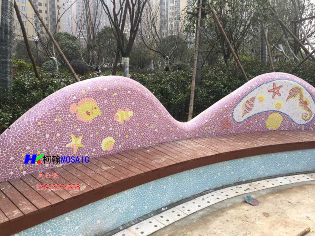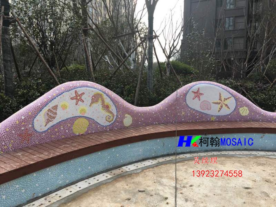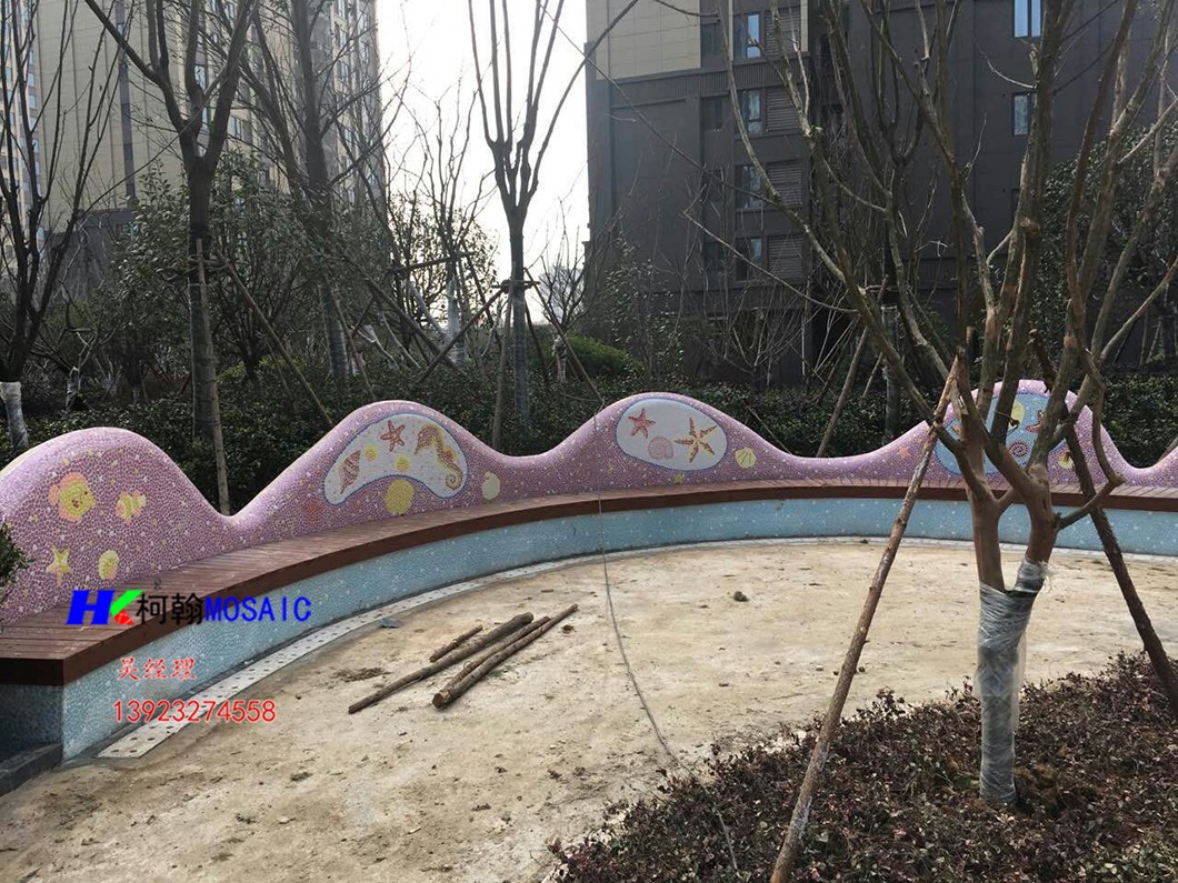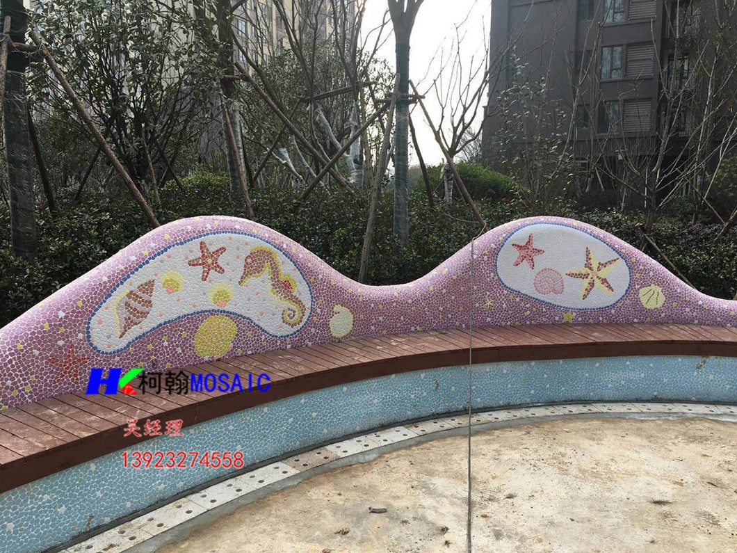 本产品由柯翰公司用陶瓷碎片精心为西双版纳万达量身制作。采用陶瓷自由石碎片和玻璃珠及鹅卵石来完成的艺术作品,显示出不凡的艺术气氛与众不同的独特之风格。陶瓷碎片和自由石碎片和玻璃珠及鹅卵石的组合边角圆滑不伤手,美观,大方,使人看后有种停住休息一会的感觉.....