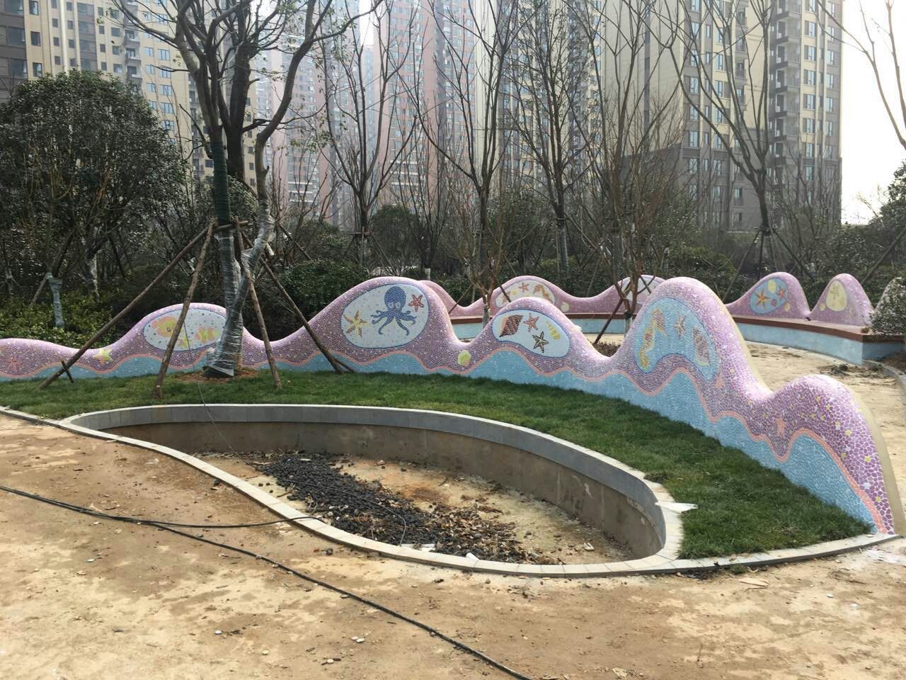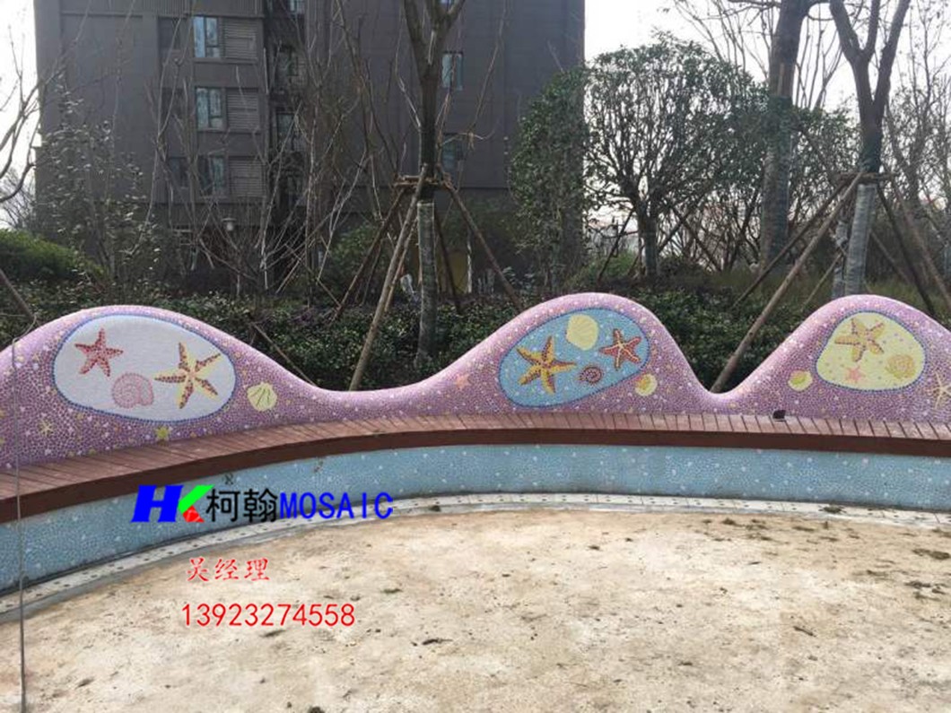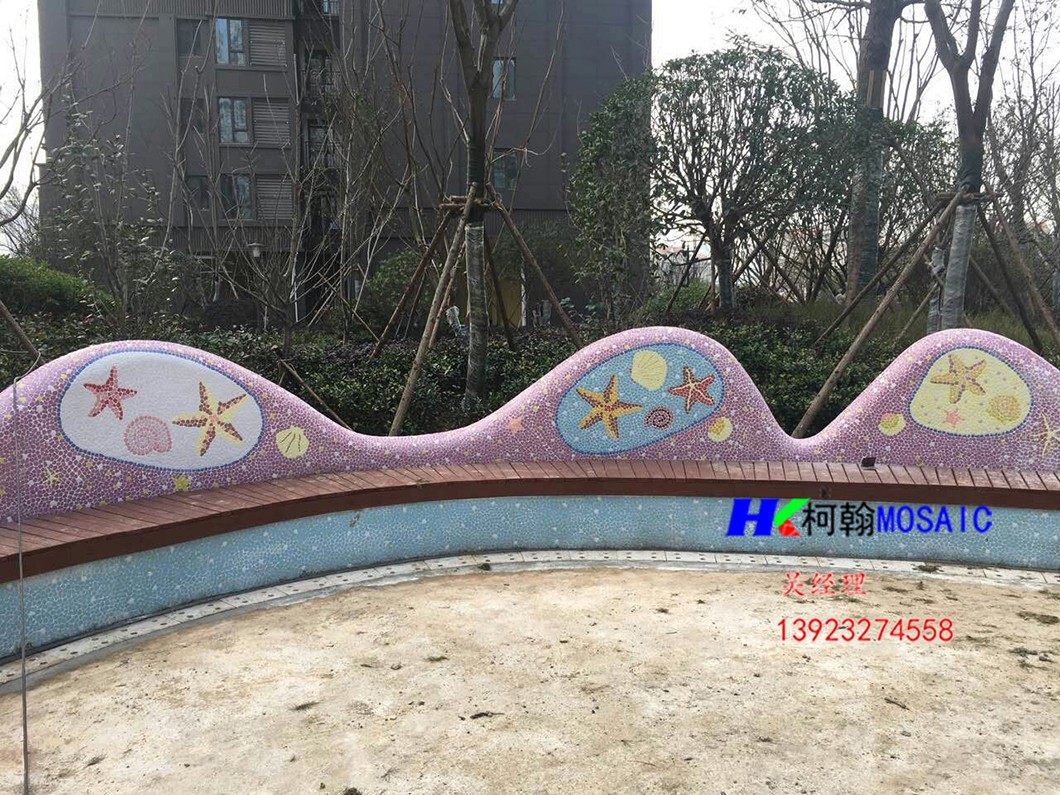 本产品由柯翰公司用陶瓷碎片精心为西双版纳万达量身制作。采用陶瓷自由石碎片和玻璃珠及鹅卵石来完成的艺术作品,显示出不凡的艺术气氛与众不同的独特之风格。陶瓷碎片和自由石碎片和玻璃珠及鹅卵石的组合边角圆滑不伤手,美观,大方,使人看后有种停住休息一会的感觉.....