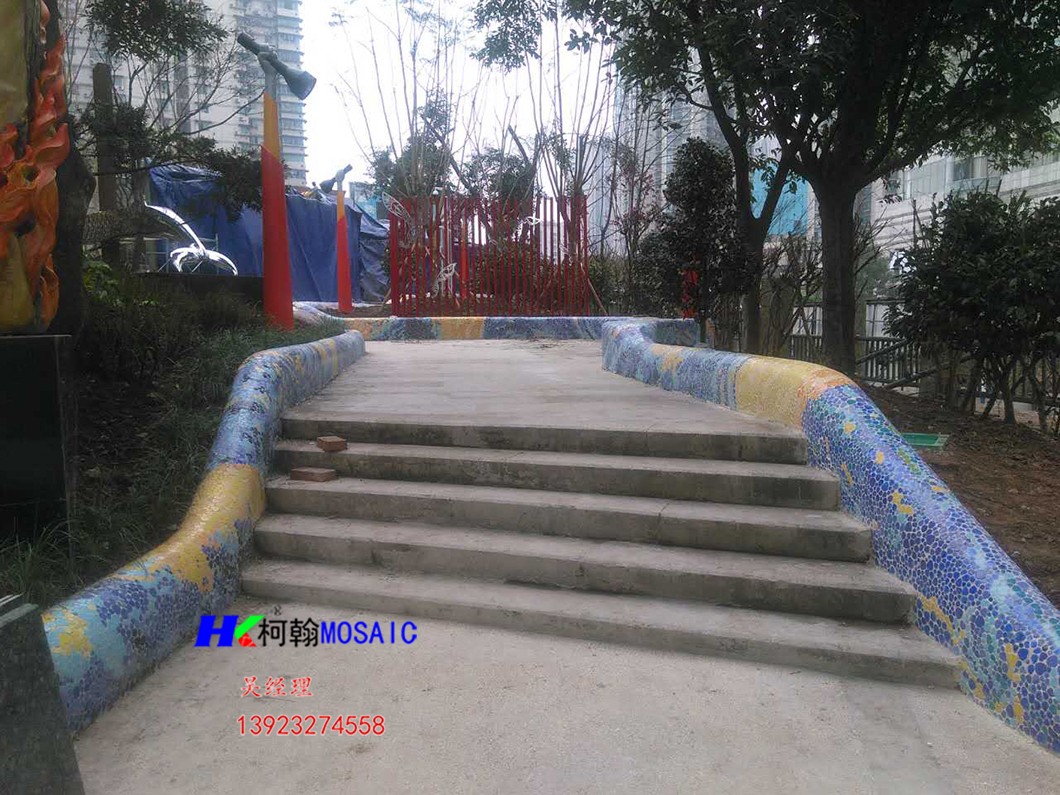 重庆九龙坡杨家坪佛山柯翰陶瓷碎片陶瓷碎片拼图马赛克青花瓷片景德镇玻璃陶瓷碎片马赛克景观阶梯树池花坛艺术花坛园林景墙